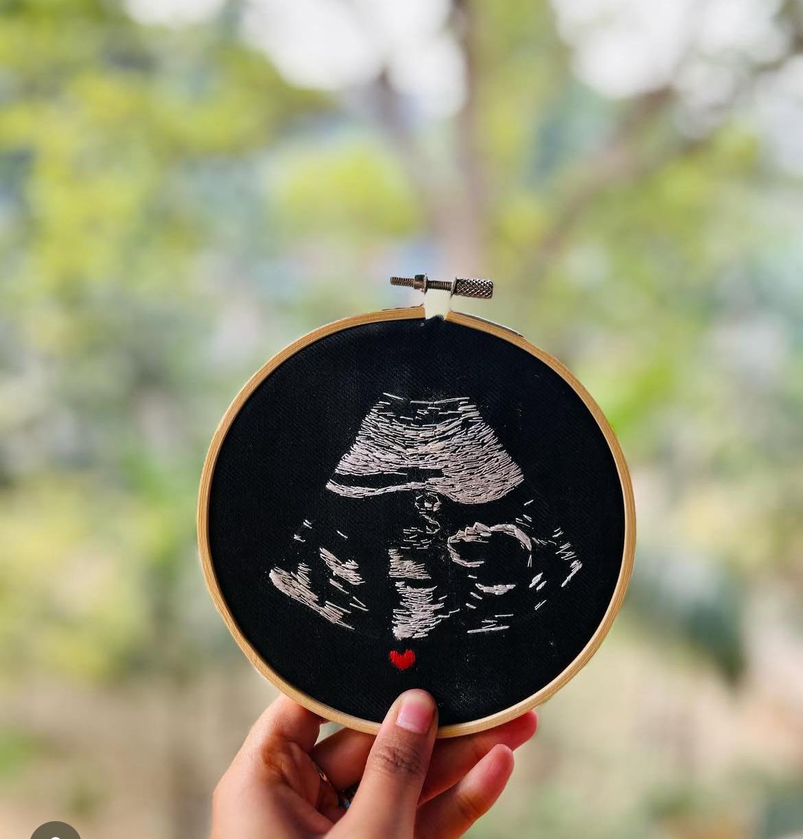 e Embroidery Title: Tulip gardenPrice: 50 € Title:Landscape Price: 30€ Title: Baby UltrasoundPrice: 50 € Title: Price: 50 € Title: Baby footprintsPrice: 50 €.